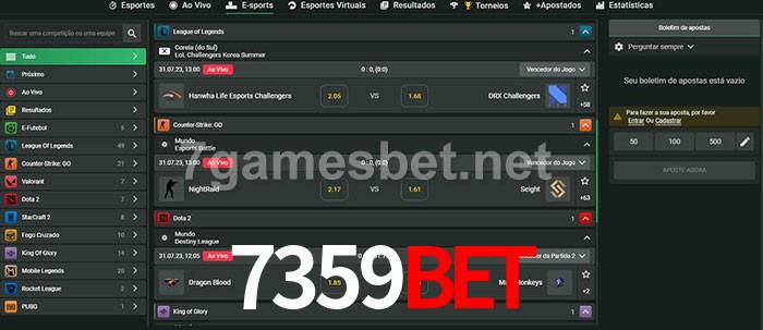 O 7359bet oferece uma grande seleção de opções de apostas em e-sports com probabilidades competitivas